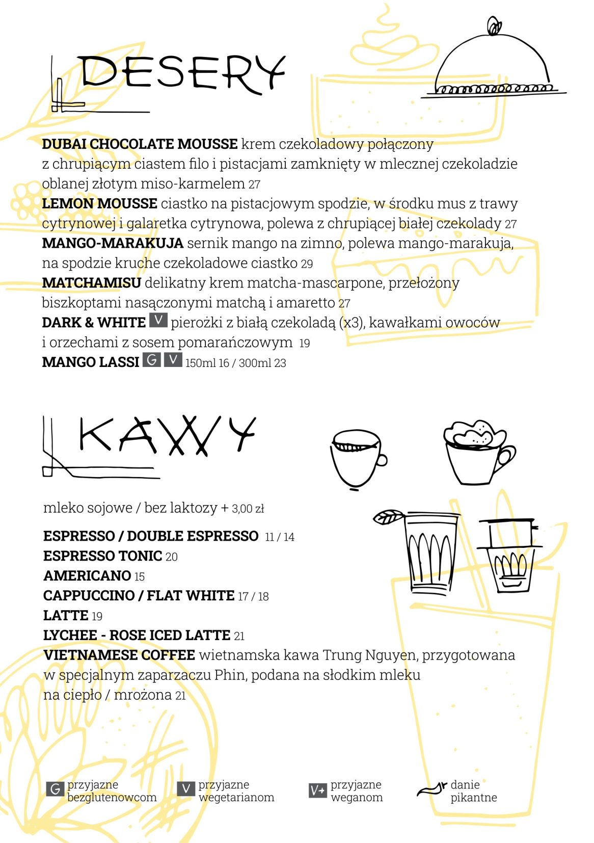 Wierzymy, że najwyższa jakość składników używanych do przygotowywania dań jest kluczowa. Wszystkie dania są przygotowywane w kuchni, w której wykorzystuje się orzechy, gluten, soję i inne alergeny. Z tego względu nie możemy zagwarantować, że którekolwiek z naszych dań jest całkowicie wolne od tych alergenów. Więcej informacji o składnikach naszych dań uzyskasz w restauracji.