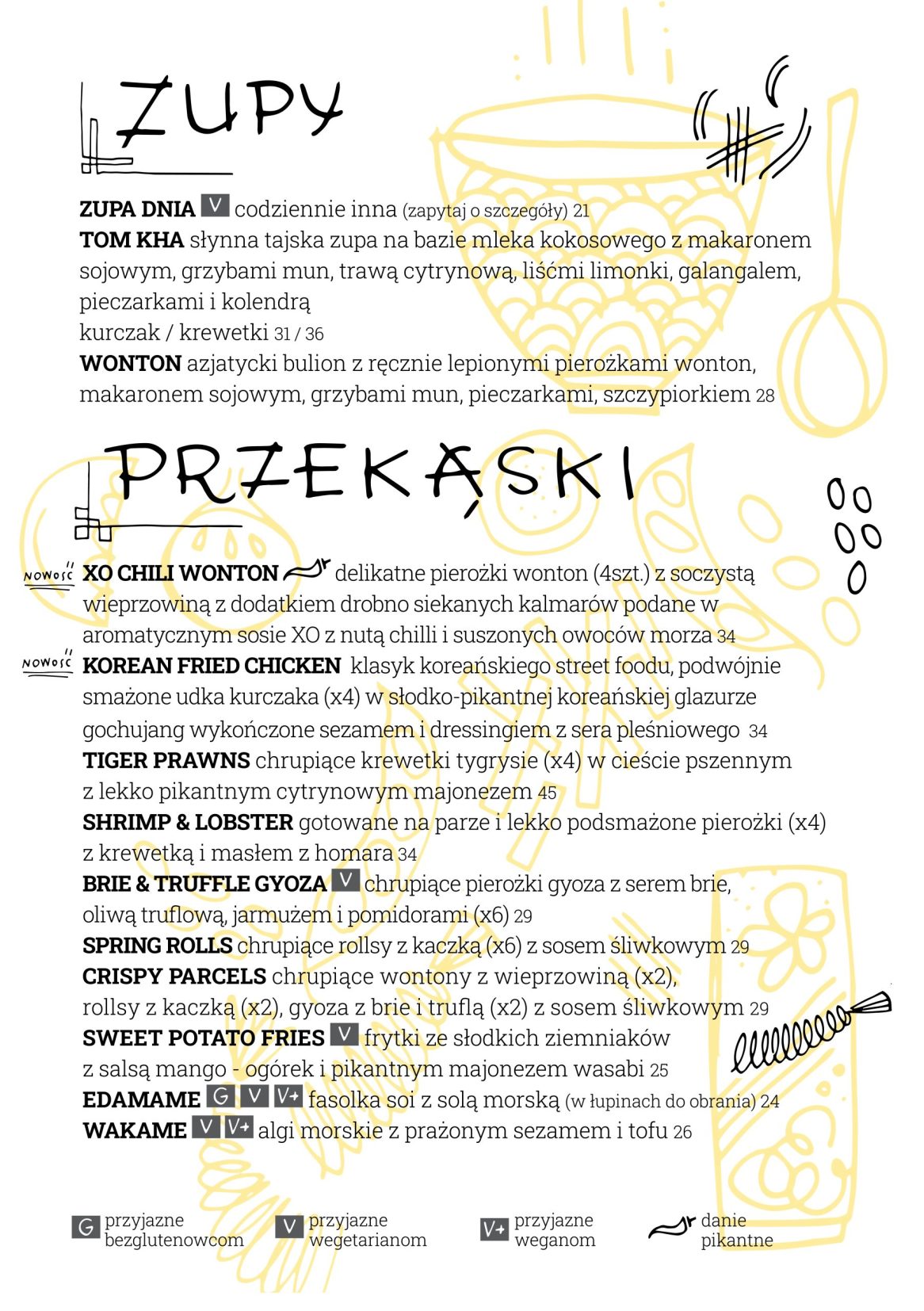 Wierzymy, że najwyższa jakość składników używanych do przygotowywania dań jest kluczowa. Wszystkie dania są przygotowywane w kuchni, w której wykorzystuje się orzechy, gluten, soję i inne alergeny. Z tego względu nie możemy zagwarantować, że którekolwiek z naszych dań jest całkowicie wolne od tych alergenów. Więcej informacji o składnikach naszych dań uzyskasz w restauracji.